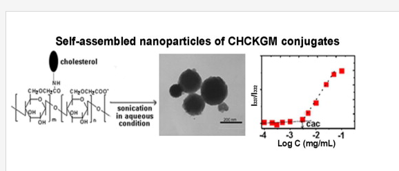 The properties of these self-aggregates were analysed by dynamic laser light-scattering (DLS), zeta potential, transmission electron microscopy (TEM) and the fluorescence probe technologies. The critical aggregation concentration (cac) of CHCKGM conjugates (2.59 × 10−3 to 5.89 × 10−3 mg/mL) was comparatively low, suggesting that the cholesterol fragment was very effective for forming aggregates.